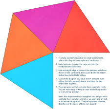 Place the two cards face up and side by side. Repeat the square and line. Bring the four faces of the pyramid together, securing them to each other by positioning the sticky tabs on the inside of the pyramid faces. The three cards should create a horizontally symmetrical triangle Copy this template of a triangular pyramid on to paper, cardboard or paperboard.